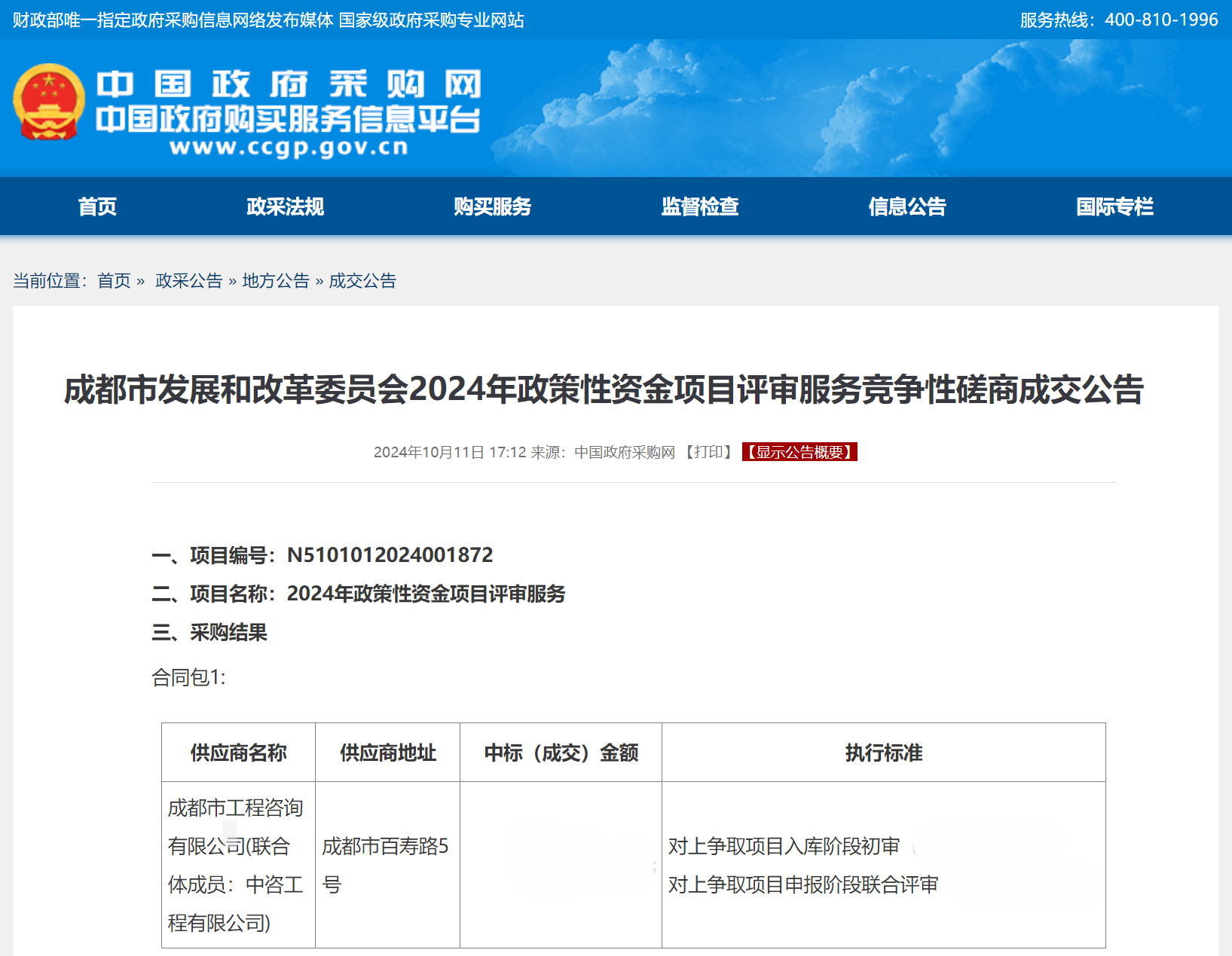 近期,成都工程咨询有限乐鱼(中国)和中咨工程有限乐鱼(中国)联合中标成都市发展和改革委员会2024年政策性资金项目评审服务。