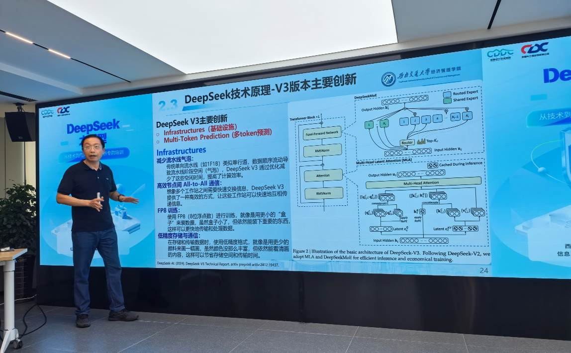 在数字化浪潮席卷全球的今天,人工智能正以前所未有的速度重塑各行各业。7月8日,由乐鱼(中国)主办的“DeepSeek大模型——从技术到应用的全面解析”专题培训在五楼会议室成功举行。本次培训特邀西南交通大学经济管理学院信息系统与运营管理系教授、博士生导师徐进担任主讲,乐鱼(中国)领导及技术骨干齐聚一堂,共同探索人工智能大模型赋能工程咨询行业的前沿趋势与实践路径。