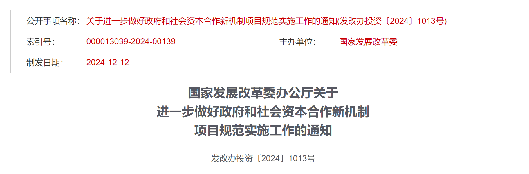 为贯彻党中央、国务院决策部署,进一步推动政府和社会资本合作(PPP)新机制落实落细,推进PPP新机制项目规范有序实施,按照《关于规范实施政府和社会资本合作新机制的指导意见》(国办函〔2023〕115号)等要求,现就有关工作通知如下